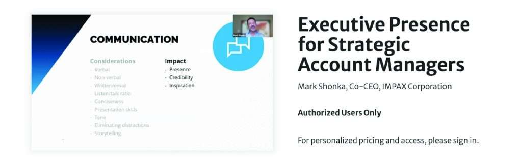 Strategic account managers are expected to collaborate effectively with customer contacts at all levels. Some of the most critical stakeholders we work with are senior-level executives. C-suite executives have high expectations, and we must be at our best to meet and exceed them. For us to confidently connect with these individuals, our executive presence must be strong. Our preparation, image, message delivery, and conduct all have an impact on the customer, for better or worse. This session will answer the question “What is executive presence, and how do I develop it?
