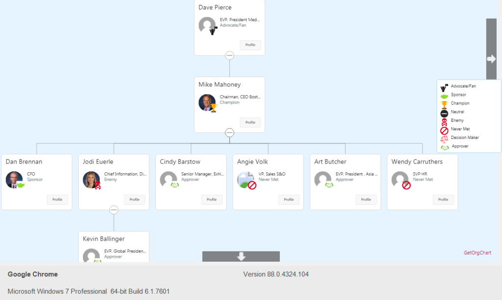 - Members of the buying committee – with pictures and status of relationship with each committee member